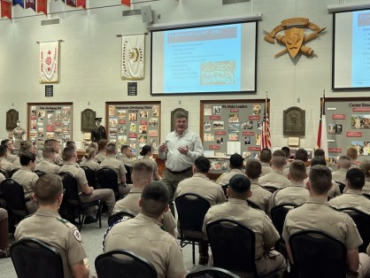 Associate Principal Craig Quadrato spoke on "Thirty-Five Years of Leadership—Military and Beyond" to cadets in the Fightin' Texas Aggie Band at Texas A&M University. The band is the largest military band in the world and is composed of more than four hundred people from the school's Corps of Cadets.