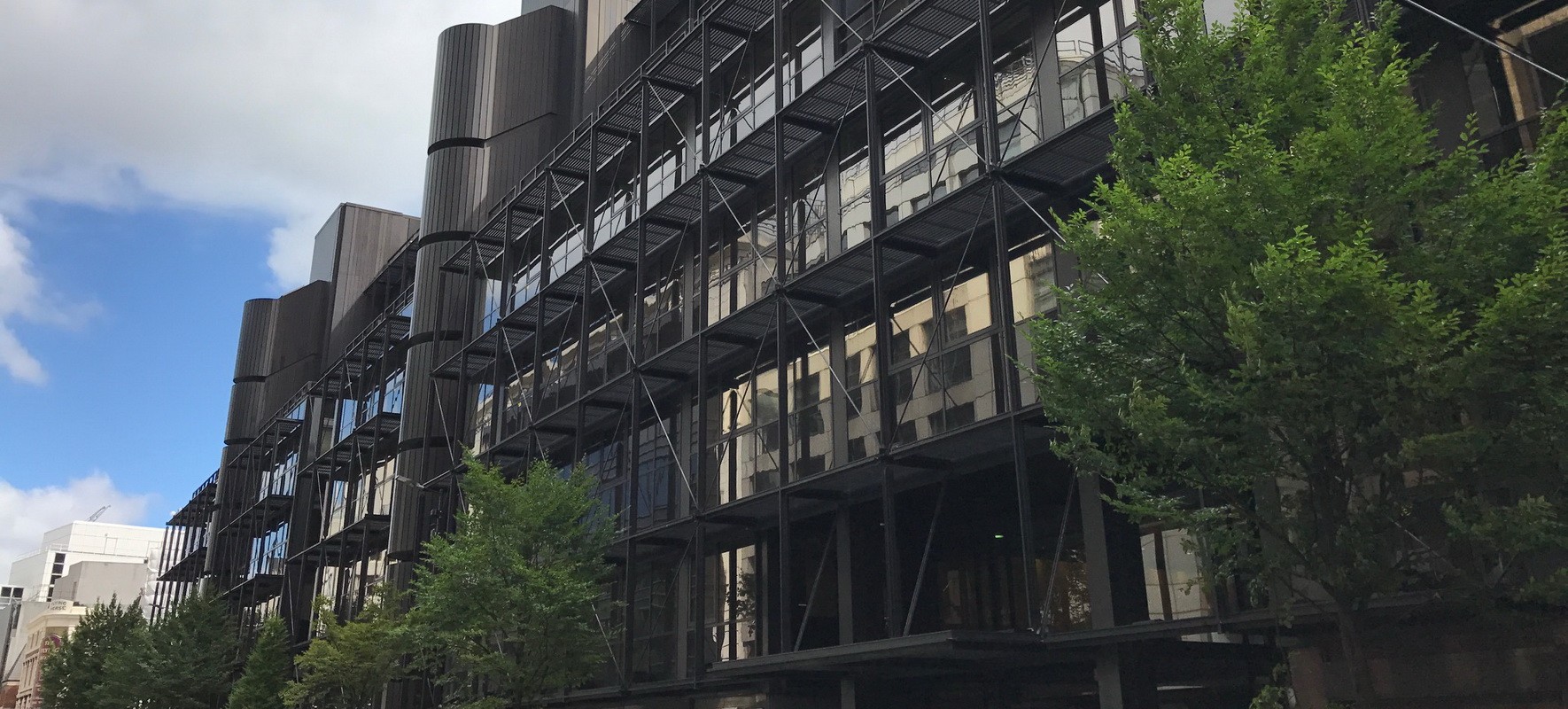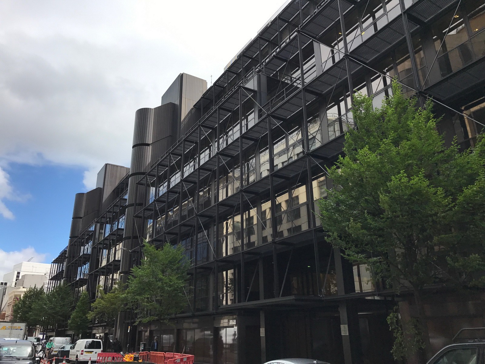 Designed by Arup Associates and constructed in 1984, 1 Finsbury Avenue is the first of several mixed-use office and retail properties located on or adjacent to Broadgate Estate in the City of London. In January 2015, the property was listed by Historic England as a Grade II Building of Special Architectural or Historic Interest. The building is notable for its use of outdoor terraces, externally expressed structural and nonstructural window wall elements, and cross-bracing and brise-soleil. The window wall was designed by Josef Gartner and includes insulating glass units and floor-line spandrel panels dry-glazed into thermally improved, dark bronze anodized aluminum frames that are supported by water-filled, hollow steel framing.