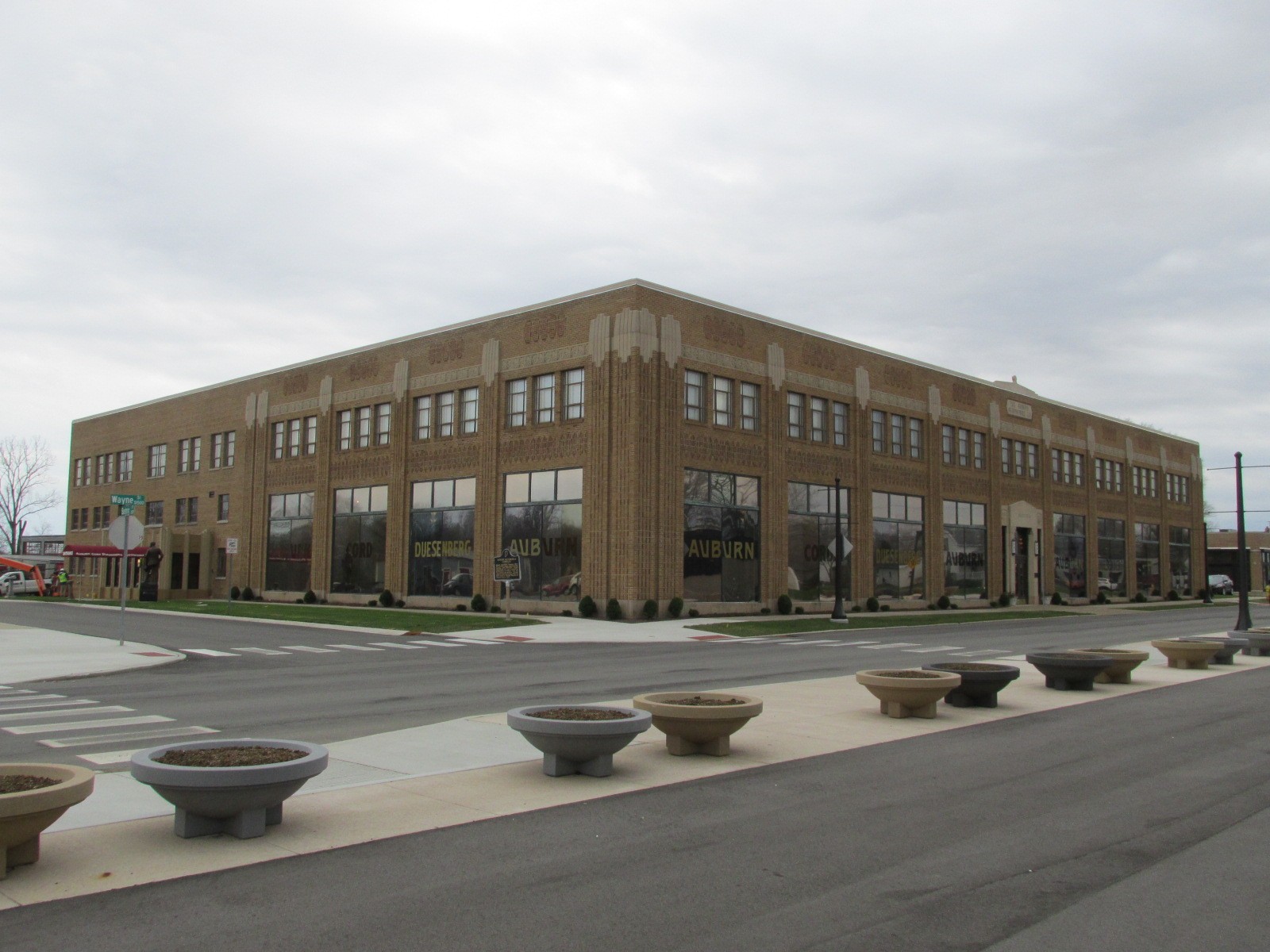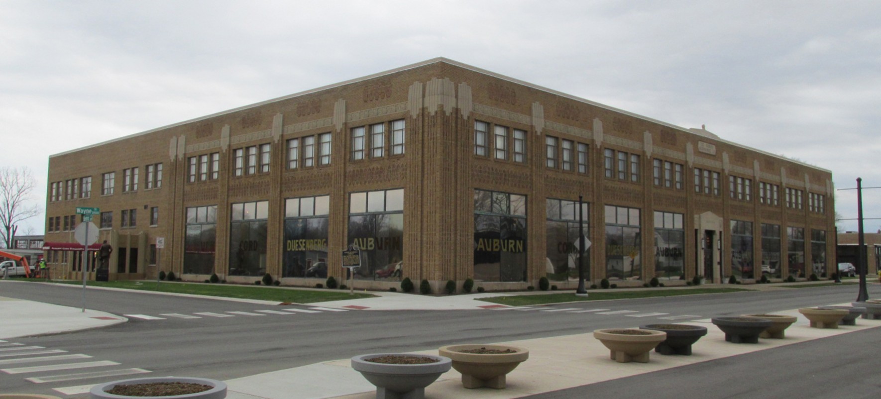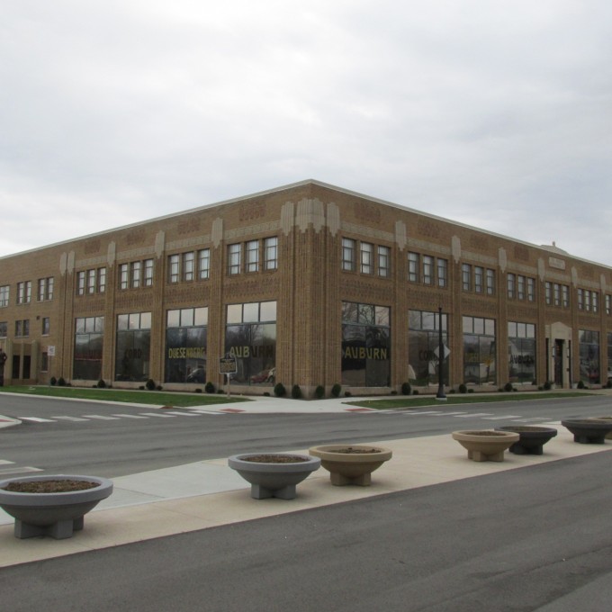 The building currently housing the Auburn Cord Duesenberg Automobile Museum was built in 1930 as the headquarters of the Auburn Automobile Company. The facades consist of light brown brick with ornamental cast stone accents and ornamental brick patterns. The roofing systems consist of combinations of EPDM and gravel-surfaced built-up roofing systems. Decorative plaster finishes exist within the original portions of the building.