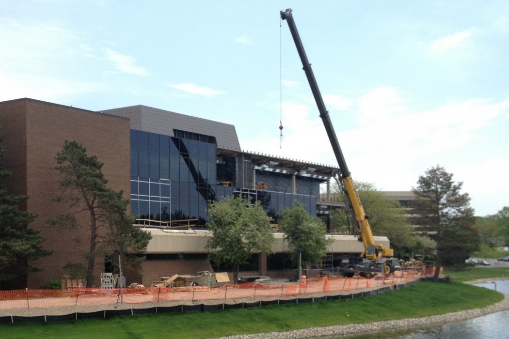Built in the 1970s, the Auto-Owners building utilized an exterior wall cladding consisting of thin, resinous fiber-reinforced panels providing a precast concrete aesthetic. Over the years, this proprietary resinous panel system exhibited deterioration in the form of cracking, spalled fragments, and discoloration. In an effort to both improve the energy efficiency of the exterior wall assembly and to address the aged condition of the cladding, Auto-Owners retained The Christman Company (Christman) to serve as the Construction Manager and Mayotte Group Architects (Mayotte) to serve at the architect of record for the design and implementation of the replacement cladding systems.