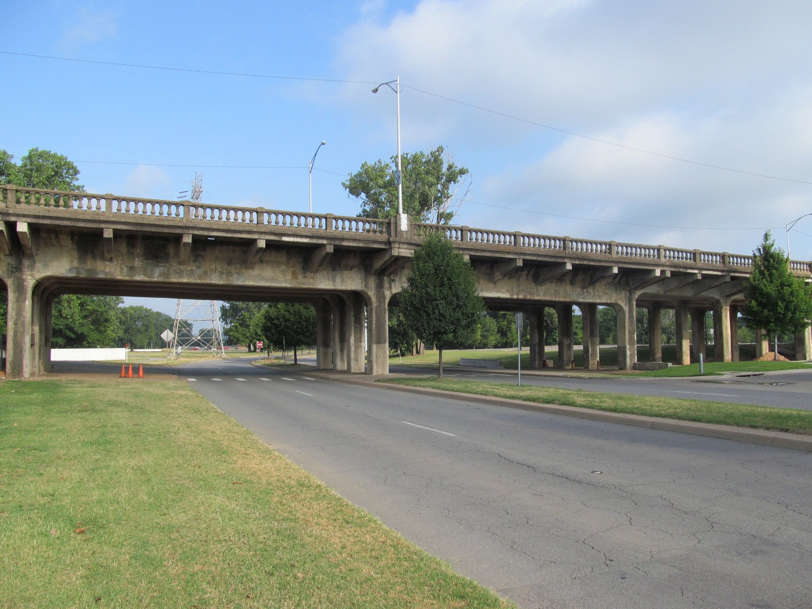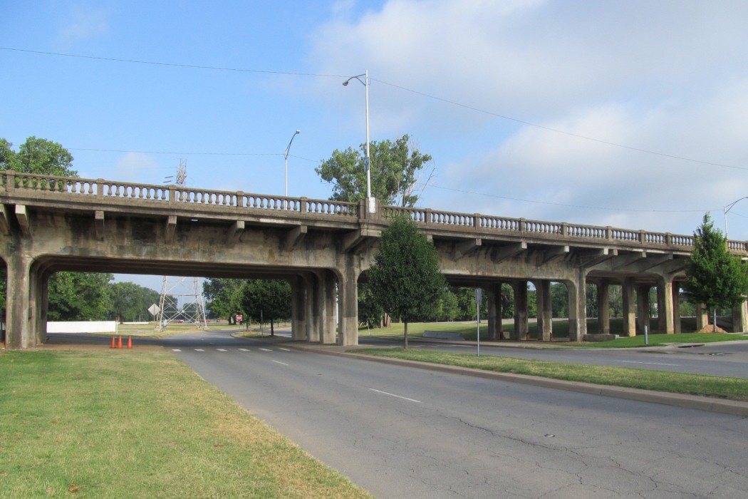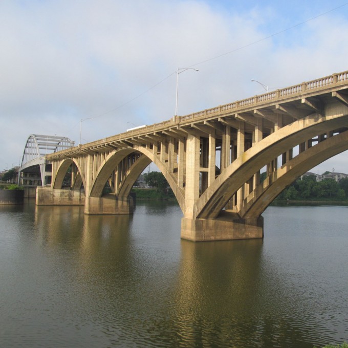 The original thirty-seven-span reinforced concrete Broadway Bridge was constructed in 1923 and spans across the Arkansas River between Little Rock and North Little Rock, Arkansas. In about 1970, the first two south river spans were replaced with a single steel tied arch span.