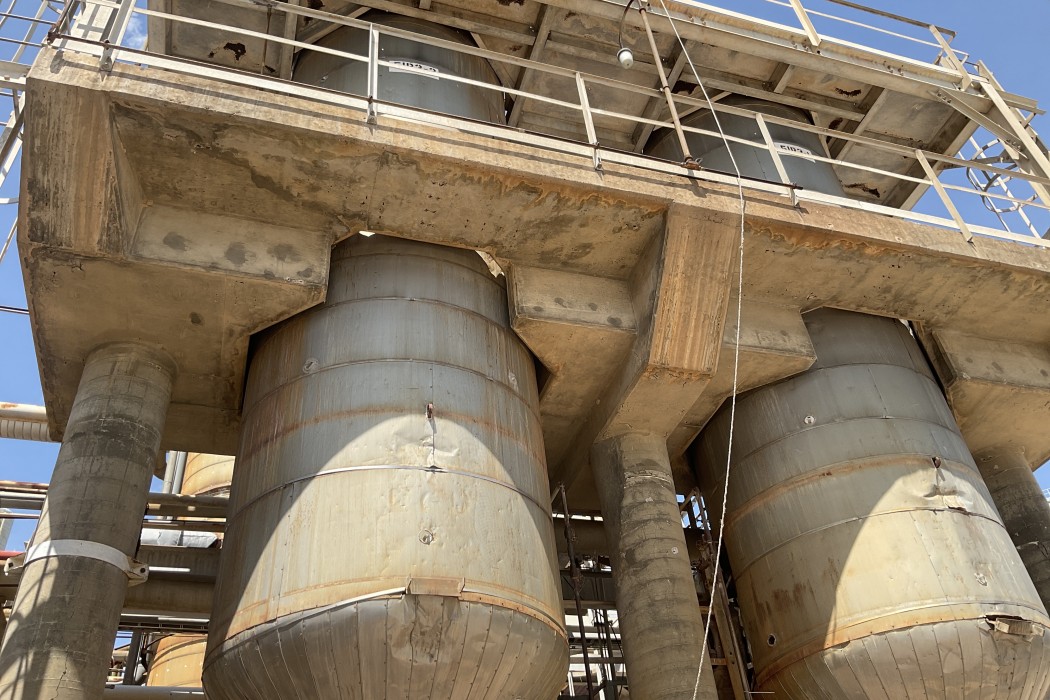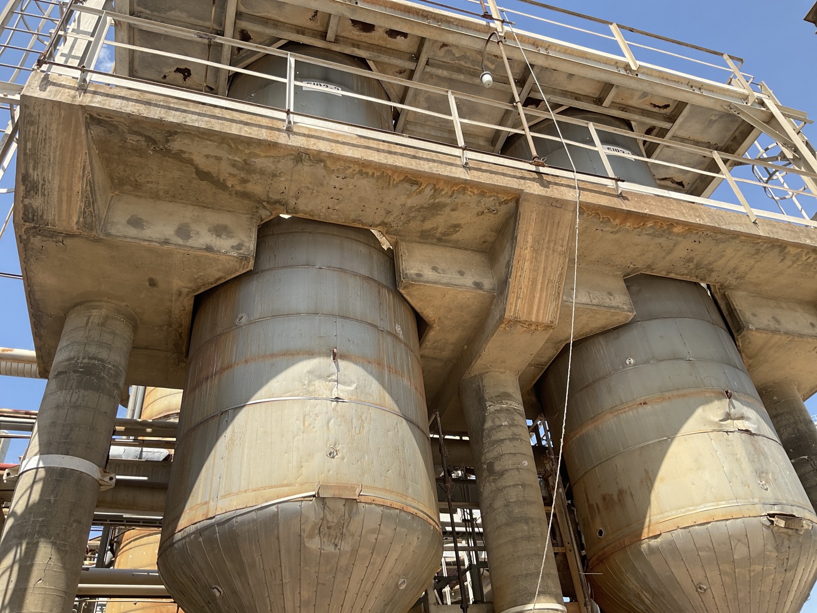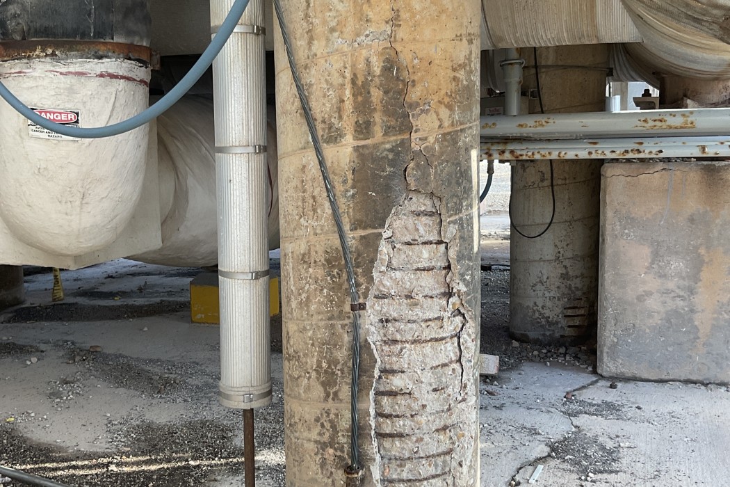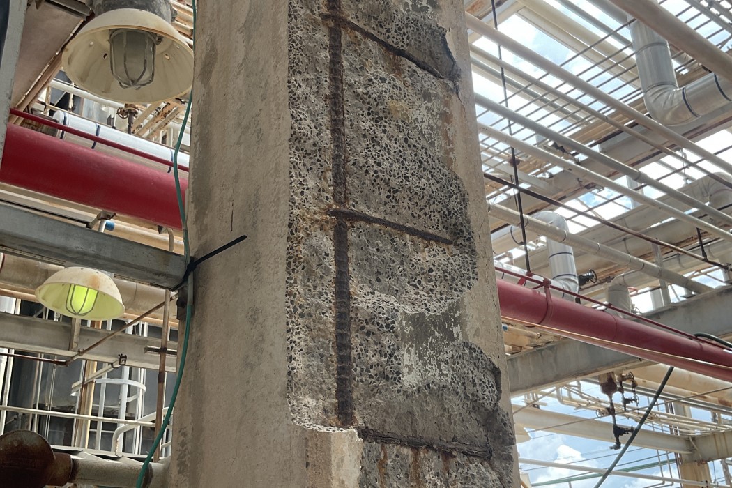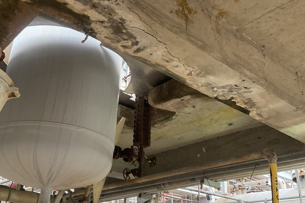 WJE mobilized a team of structural engineers with experience in assessing concrete structures in process facilities to the site. We performed a visual assessment throughout the unit and performed acoustical sounding at selected locations to better understand the extent of deterioration.