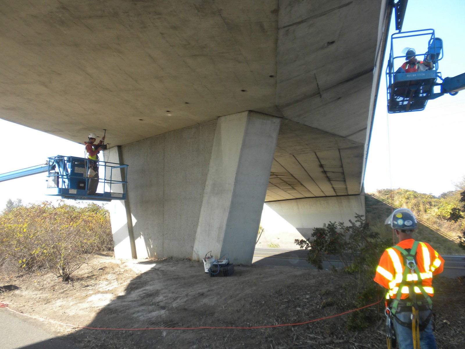Post-tensioned bridge structures introduce a specific challenge to bridge inspectors and owner's due to the difficulty in assessing hidden conditions. With large structures, this problem is compounded due to complexity and size. WJE was retained by ODOT to perform a specialized inspection of two bridges. This specialized inspection included limited visual and acoustic sounding surveys, inspection openings, nondestructive testing, and materials testing. The purpose of the work was to identify post-tensioning distress.
