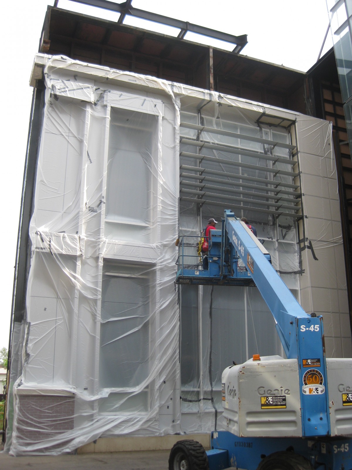 In light of recent innovations in web-based project management software, WJE elected to utilize the e-Builder® program to document on-site observations and to record the results of field performance testing during construction. Site observation items were identified as either noncompliant with the contract documents or marked as an unanticipated condition that required further review by the design team. WJE's use of e-Builder® enabled individual site observations to be created by WJE and efficiently distributed to the architect of record, general contractor, and/or owner for comment. Relevant parties commented within the structure of the program and deficient items were monitored until corrected or accepted by the architect of record or owner. This process ensured that incorrect or otherwise nonperforming work did not remain unresolved at project completion.