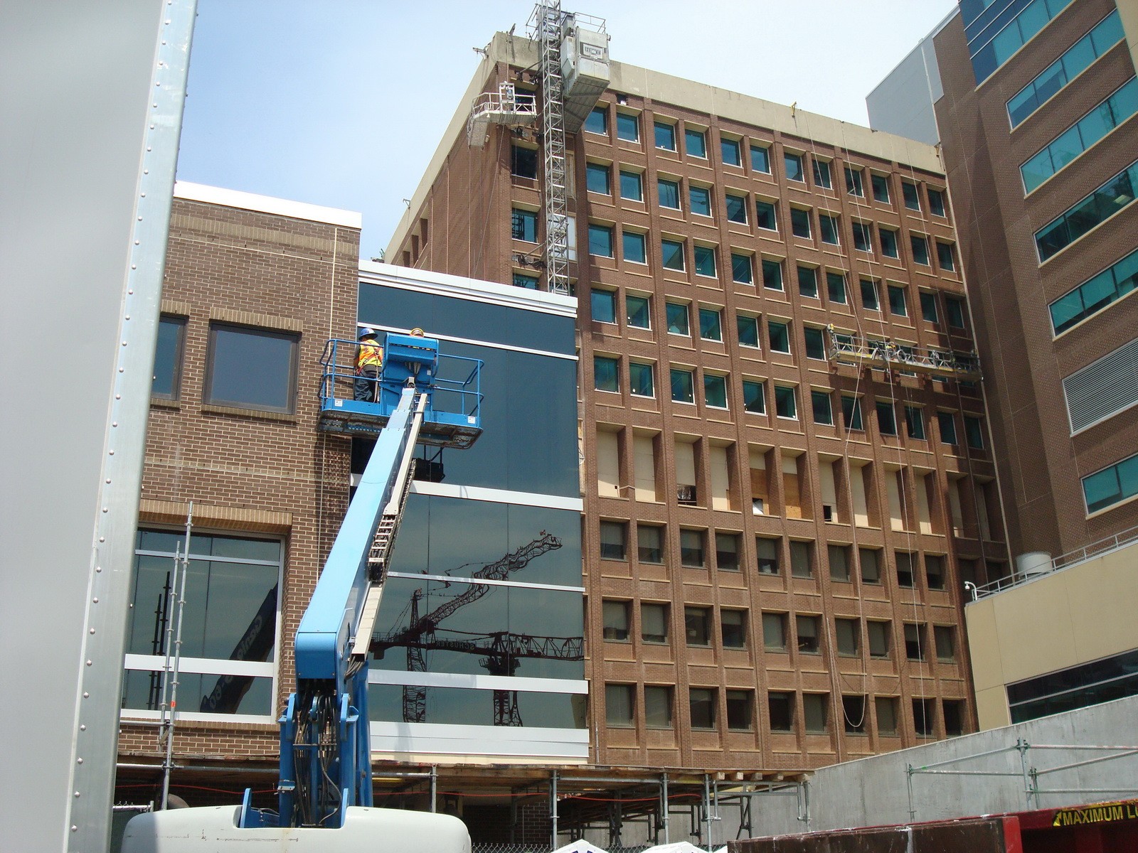 Renovation of the Inova Critical Care Wing (CCW) and North Tower Building (NTB) was part of the larger $850 million Inova Fairfax Medical Campus Expansion, including the addition of a new medical/surgical tower and new Women's and Children's Hospital (also WJE projects). The buildings are brick masonry veneer with precast structure and concrete masonry infill and include segmented curtain wall and punched windows with modified bitumen and polyvinyl chloride roofs. The buildings interface with four adjacent existing buildings on the campus, all of which remained operational during construction, as did half of the north tower building itself.