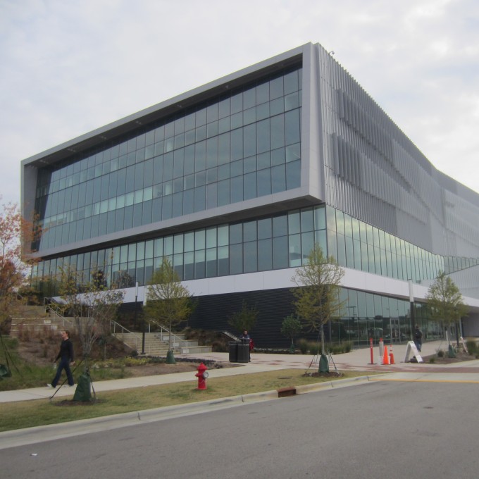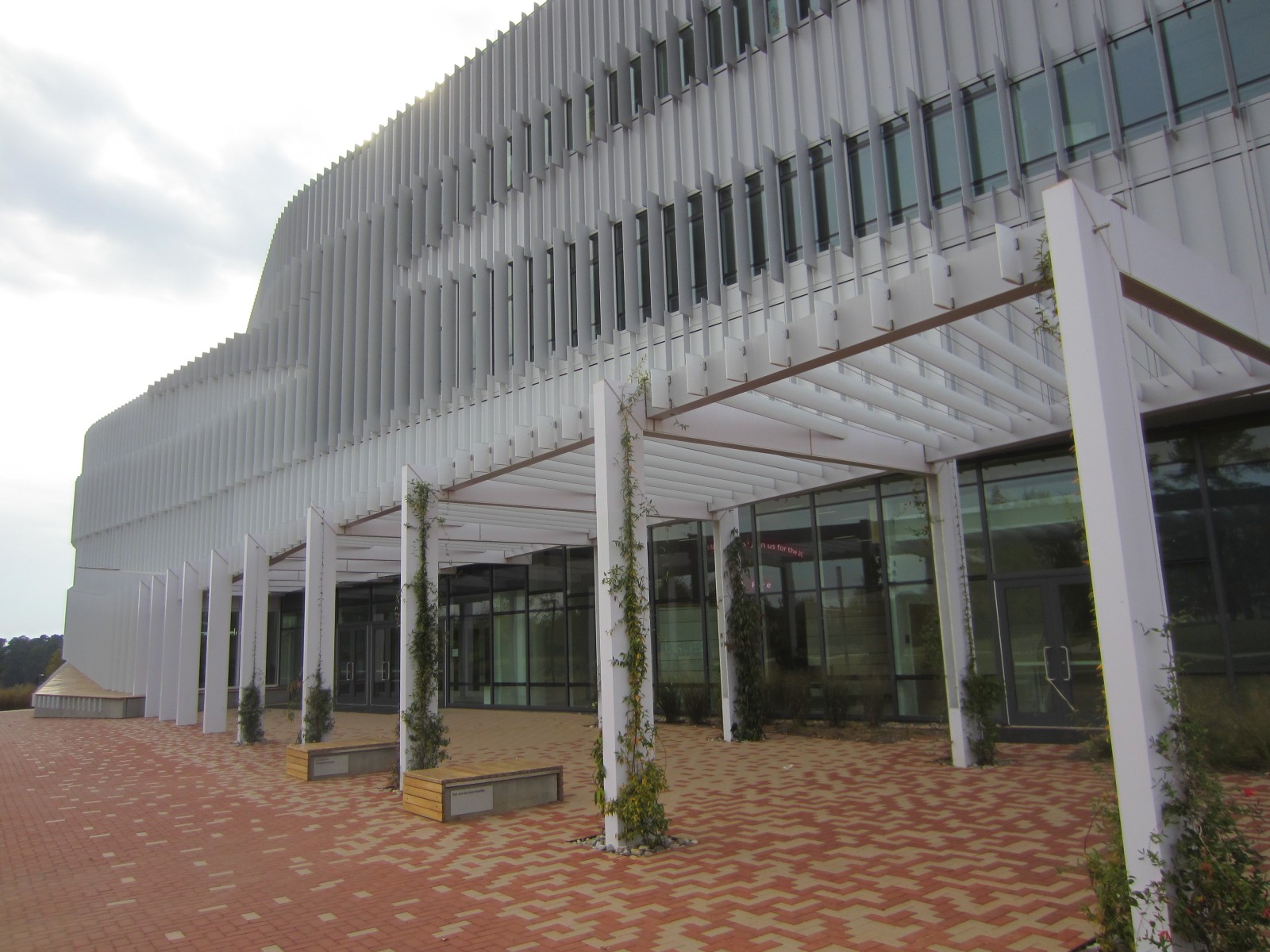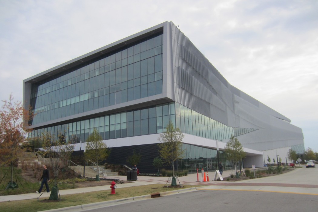 The Hunt Library consists of a four-story, curved facade building designed by Snohetta, located centrally on the university campus. The exterior of the building features a unitized curtain wall and small areas of fiber cement panel cladding over a comprehensive air barrier and green roof assemblies. The new library serves as the center of technology-based learning and stores over 1.5 million volumes in a five-story automatic retrieval system housed partially below grade.
