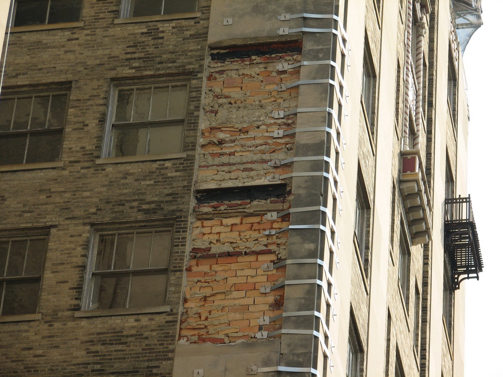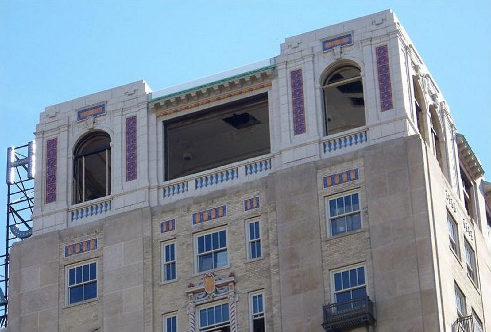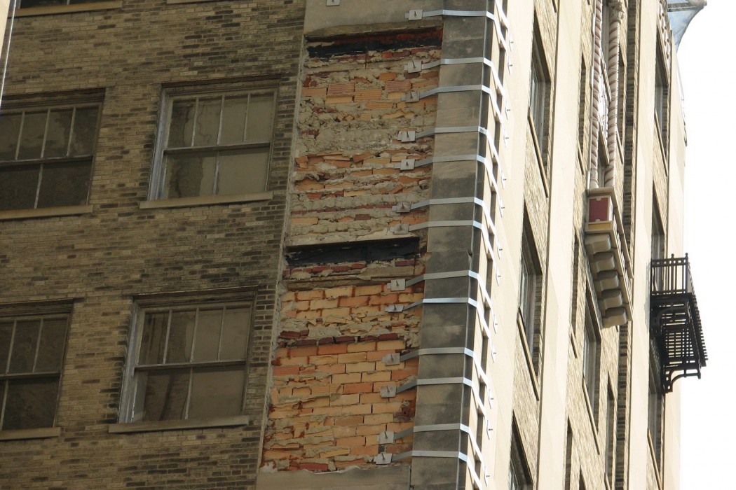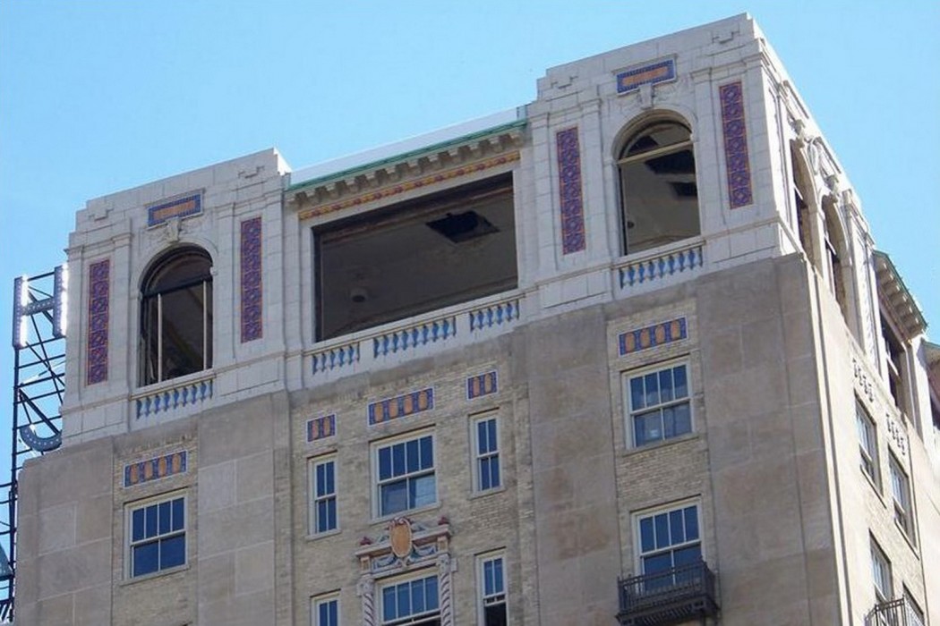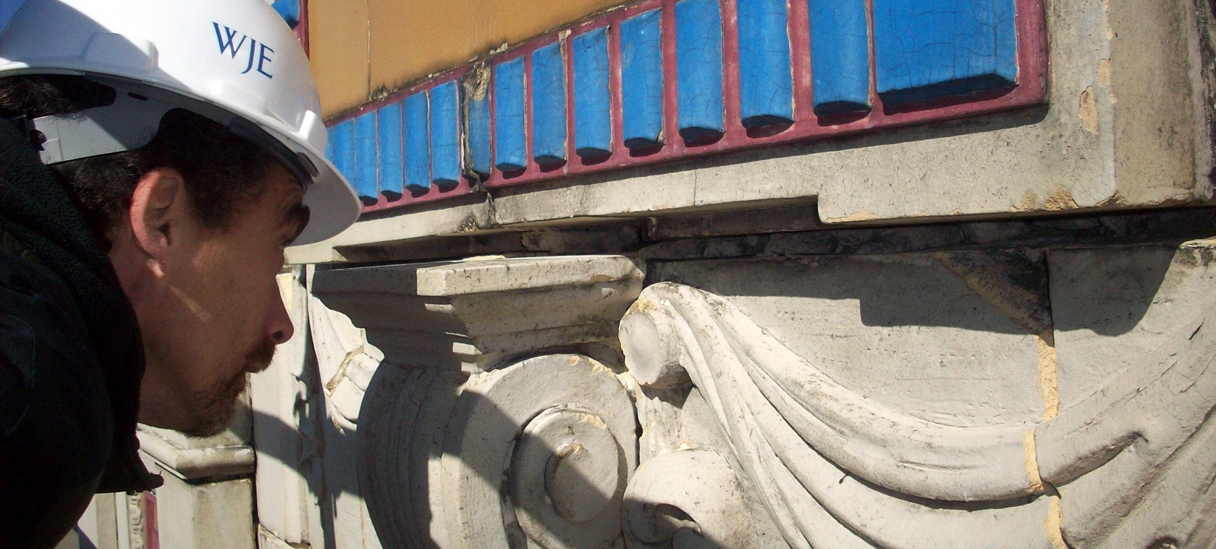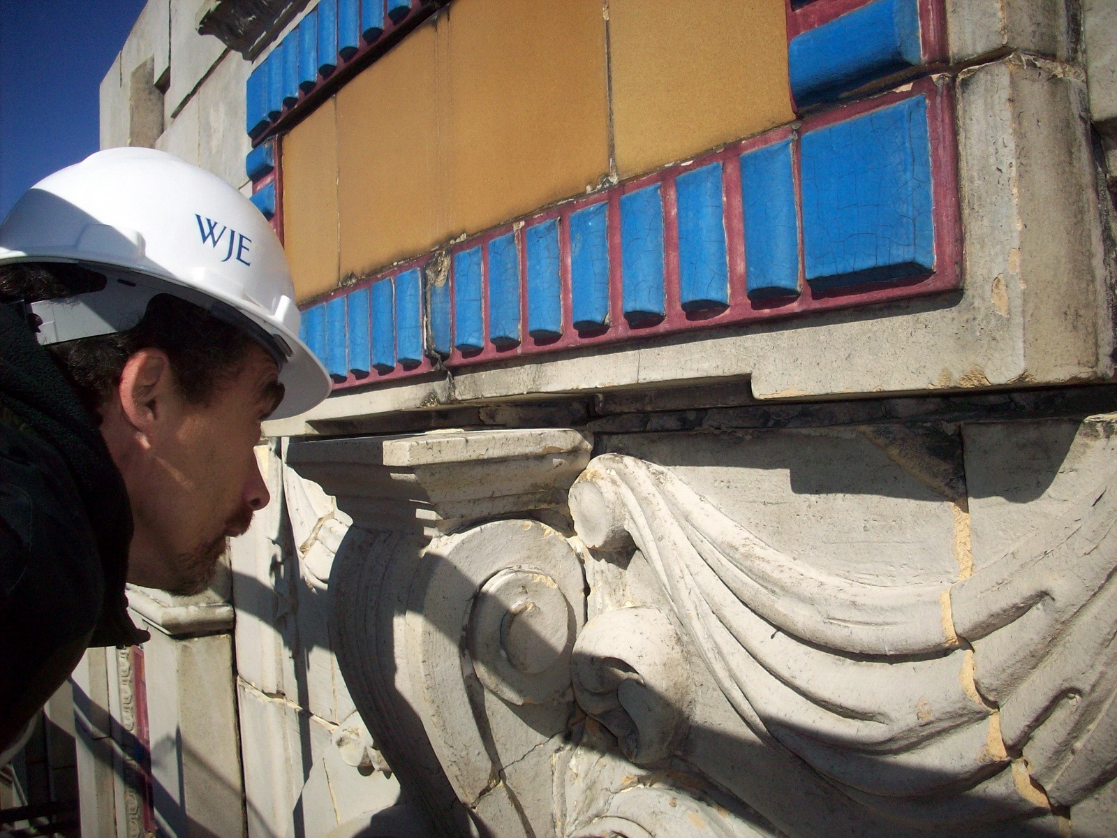 The originally proposed limestone panel repair design posed scheduling challenges within a tight construction timeline and failed to meet historic tax credit criteria. Rather than installing bolts through the limestone and terra cotta back-up and into steel framing at the interior, the final repair approach reintegrated the limestone and the terra cotta back-up from only the exterior, using adhesive anchors to secure the limestone to the terra cotta back-up, which maintained the original load path and minimized the need for supplemental strengthening of systems that were not originally designed to carry limestone cladding loads. Through-face adhesive anchors were designed based on test data and load analysis and were used at virtually all limestone panel configurations due to the potential that the existing anchors were corroded and no longer functioning. Every limestone panel was stabilized from the exterior with no need to perform work at the interior, allowing the interior restoration efforts to go forward unimpeded. Additional repairs included full restoration of the polychromatic terra cotta and replacement of unstable brick masonry.