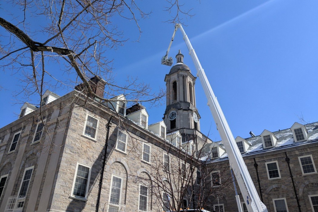 Designed by American architect Charles Zeller Klauder and built in 1930, Old Main is one of the most iconic and well-known buildings at The Pennsylvania State University. The exterior walls are composed primarily of locally quarried limestone masonry and the original wood windows. The main roof includes a combination of flat and standing seam copper and slate shingles. Accenting the federal revival-style building is an 88-foot-tall bell tower capped with a limestone dome and lantern.