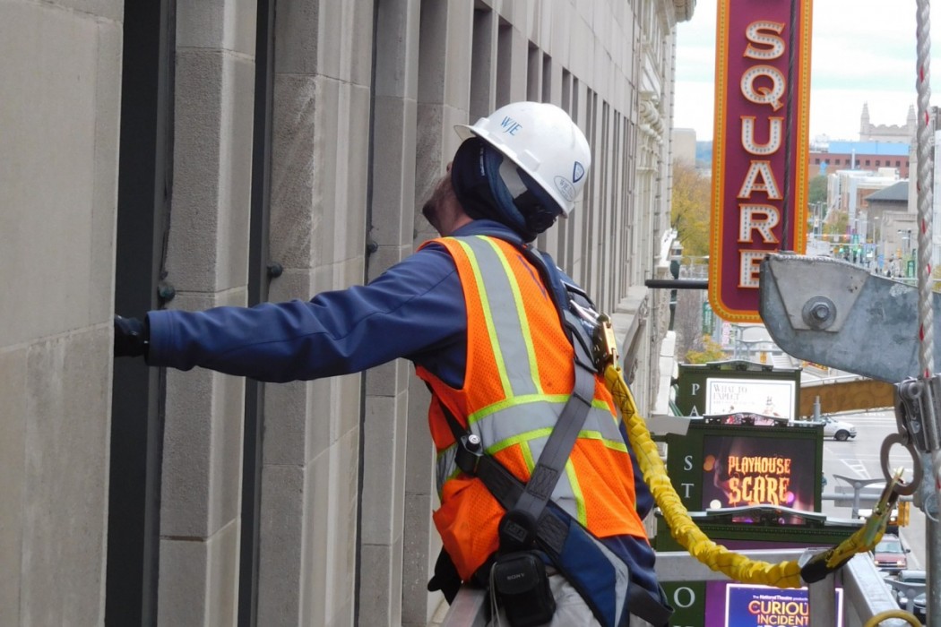WJE worked with the building owner’s contractor who provided contractor assistance, including temporary stabilization of select conditions at the Bulkley and Hanna Building facades.