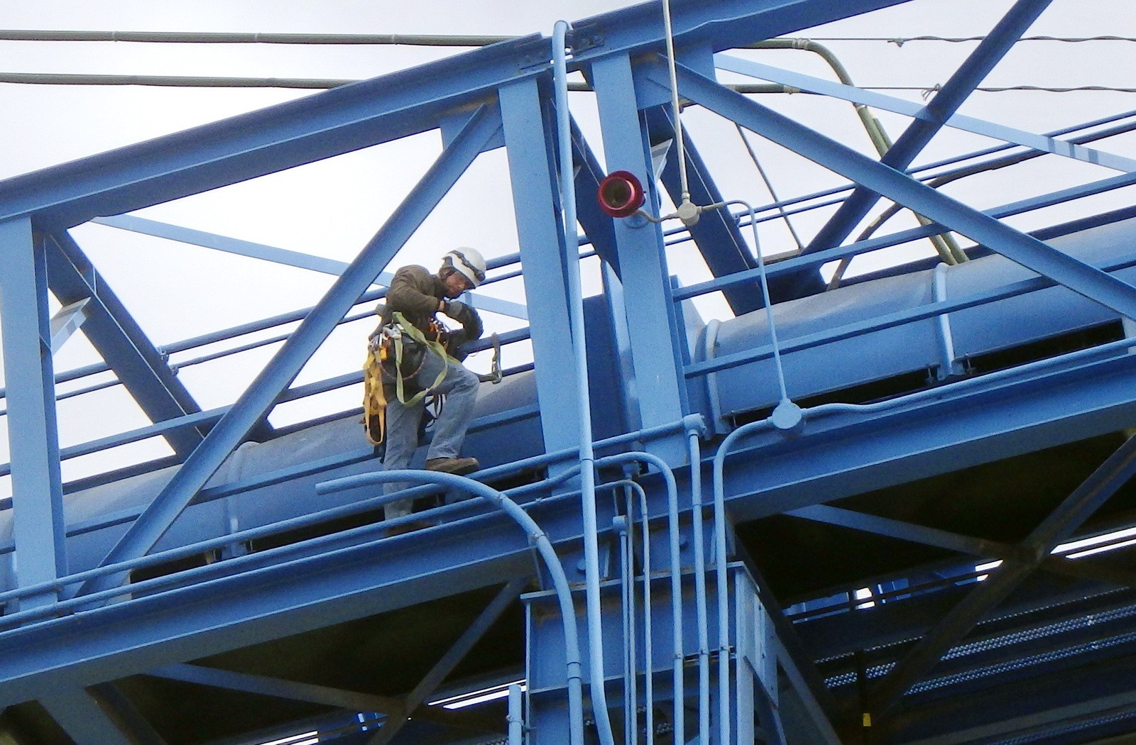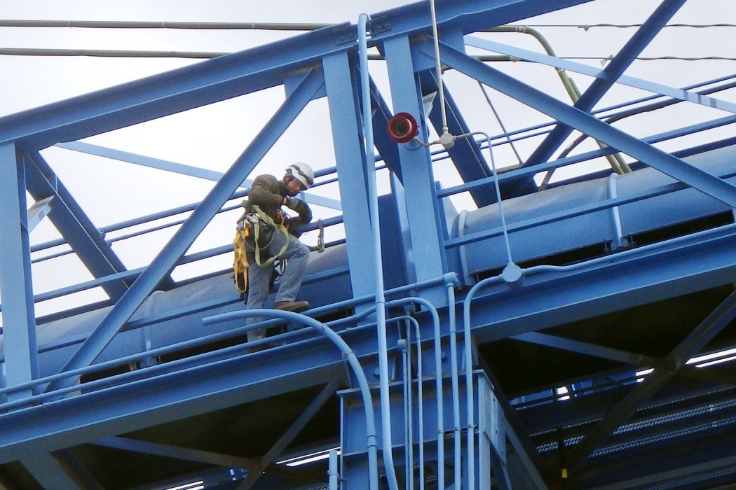 WJE’s specific scope included concrete grain elevator buildings, silos, and related structures, as well as steel bridge structures and storage tanks. Our due diligence assessment of the terminal concrete and steel structures was conducted primarily by visual observations. Given the size and nature of the steel structures, the inspections were performed by members of our Difficult Access Team, which used industrial rope access techniques. To efficiently assess the exterior of the 230- and 260-foot-tall grain elevator buildings, we surveyed the buildings using drone-mounted high-resolution video cameras to characterize and quantify the distress observed. The assessment involved five specialized WJE teams, in addition to subconsultant teams, to investigate the bulk materials handling systems and electrical and control systems in the terminal. The assessments were performed while the facility was operational and required careful planning and coordination with the PHA and terminal operator.