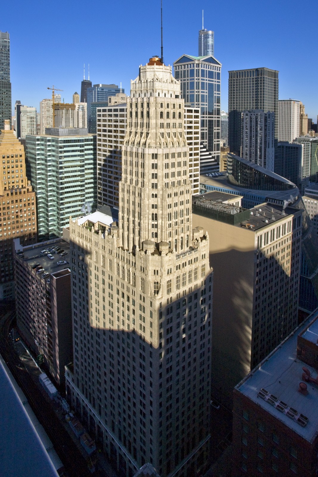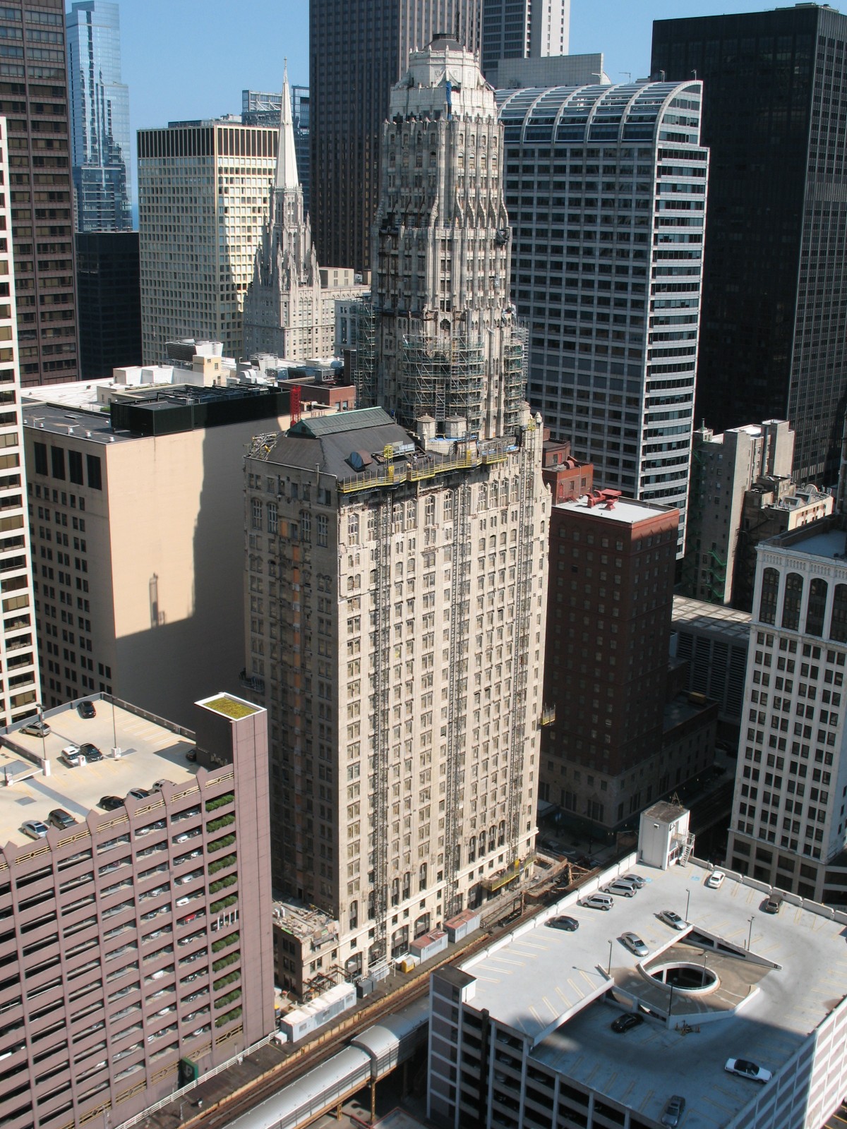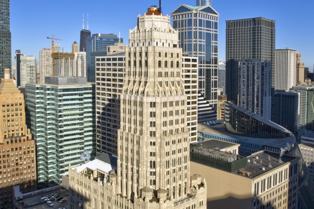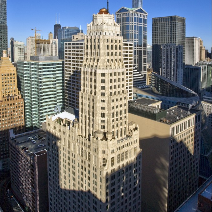 With its visually dramatic tower, Randolph Tower—originally known as the Steuben Club Building—is one of Chicago's finest 1920s-era skyscrapers. Built in 1929 as a multipurpose building housing a private club and retail and commercial offices, Randolph Tower was designed by the noteworthy Chicago firm of Karl M. Vitzthum & Co. in a Gothic Revival style greatly influenced by the 1922 Chicago Tribune Tower Competition. The 45-story high-rise is distinguished by an 18-story polygonal tower that rises via a series of setbacks from a 27-story base. At 463-feet tall, it is the second-tallest terra cotta-clad structure in Chicago. Randolph Tower was listed on the National Register of Historic Places in 2007 and certified in 2013.