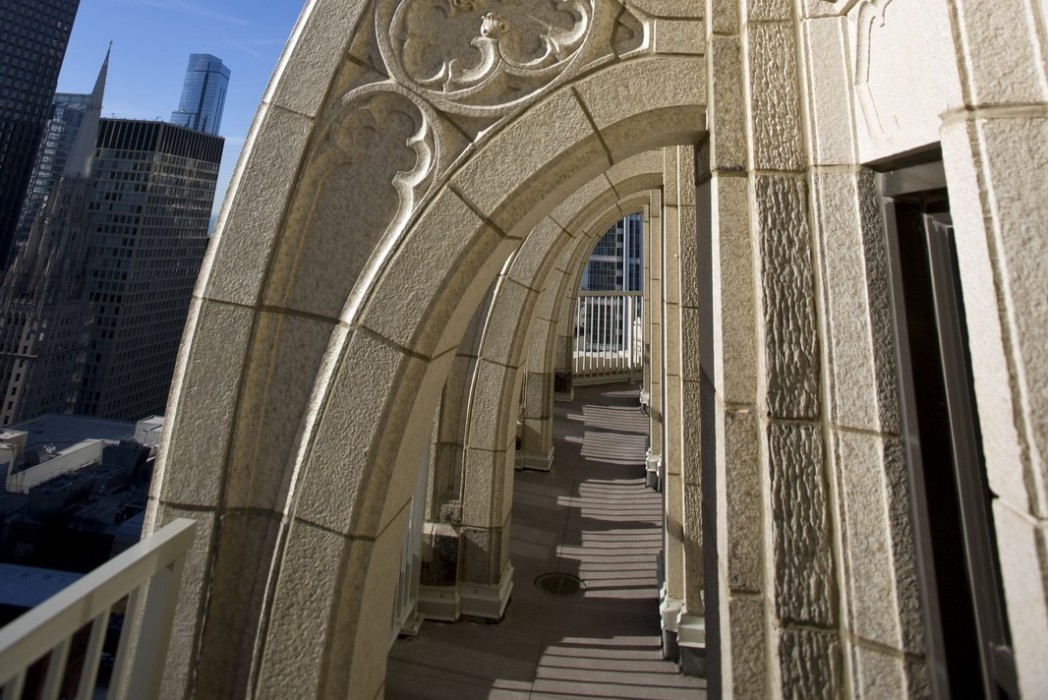After a thorough, hands-on review of the exterior, it was determined that nearly 60 percent of the building was in disrepair. In total, 14,000 terra cotta units were removed and replaced; another 16,000 terra cotta units were removed and reused; and 8,000 units were repaired in place. This combination of new and used terra cotta units was successfully intermixed with fiberglass replica panels, replacing approximately 7,500 terra cotta units.