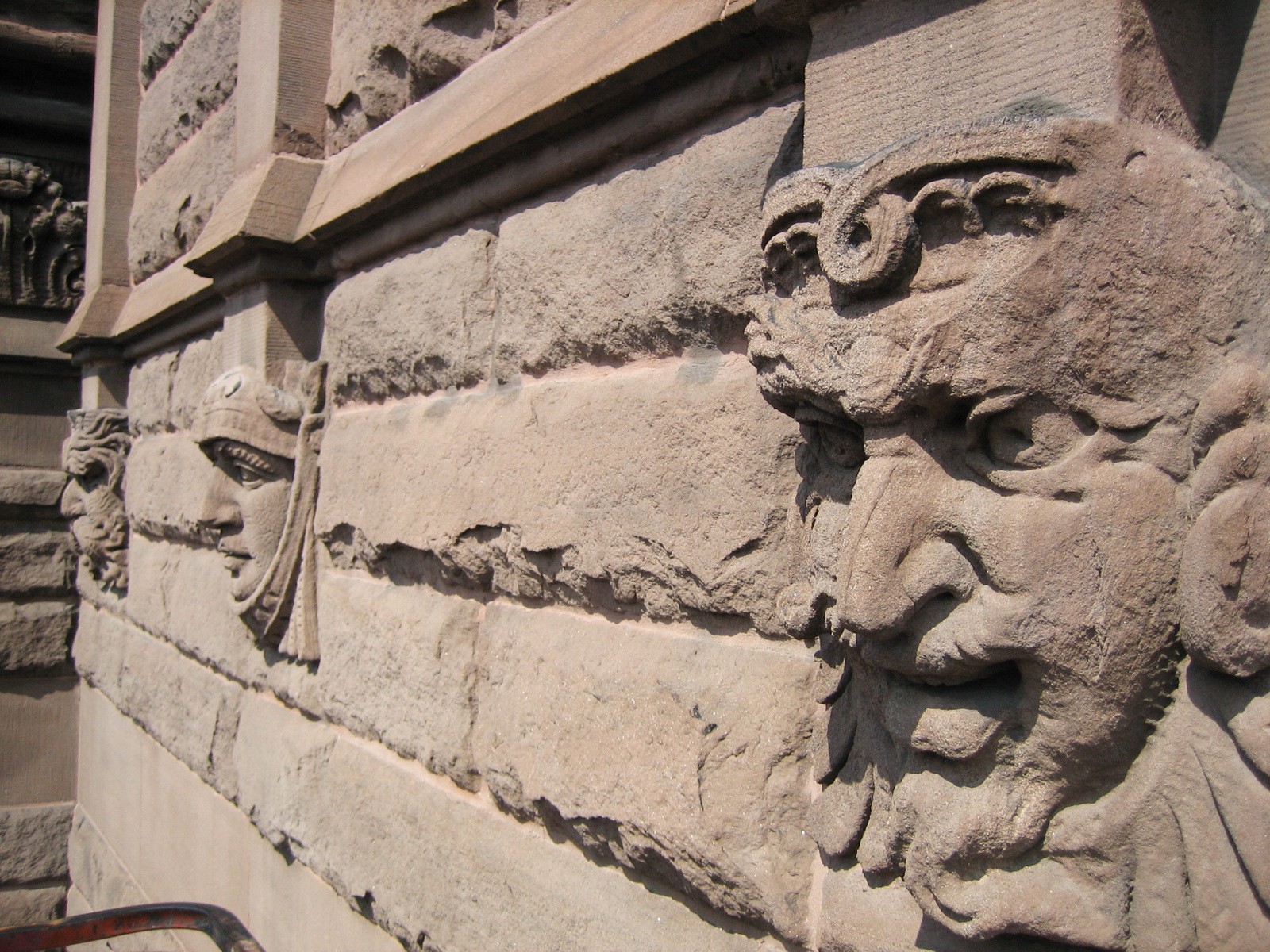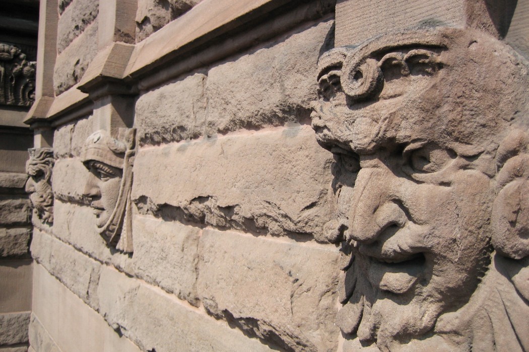 WJE engineers prepared baseline drawings and performed a comprehensive field survey of existing conditions. The engineers evaluated alternative sandstone masonry treatments through a comprehensive material testing program in WJE's in-house laboratory. Field trials of various stone treatments were implemented and evaluated, and mock-ups were conducted of select replacement and cleaning techniques.