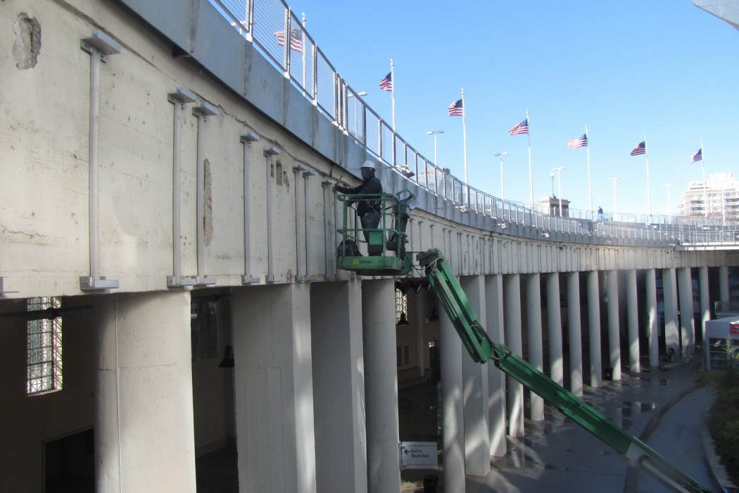 2004–date: Evaluations and repair initiatives undertaken as needed, including facade concrete repairs, expansion joint repair/replacement, horseshoe promenade slab repairs, parking garage inspections and repairs, and davit testing