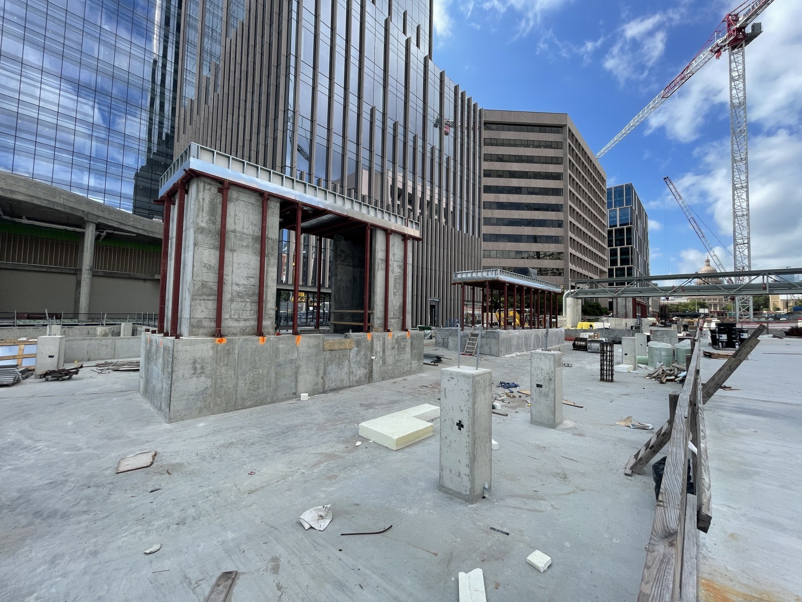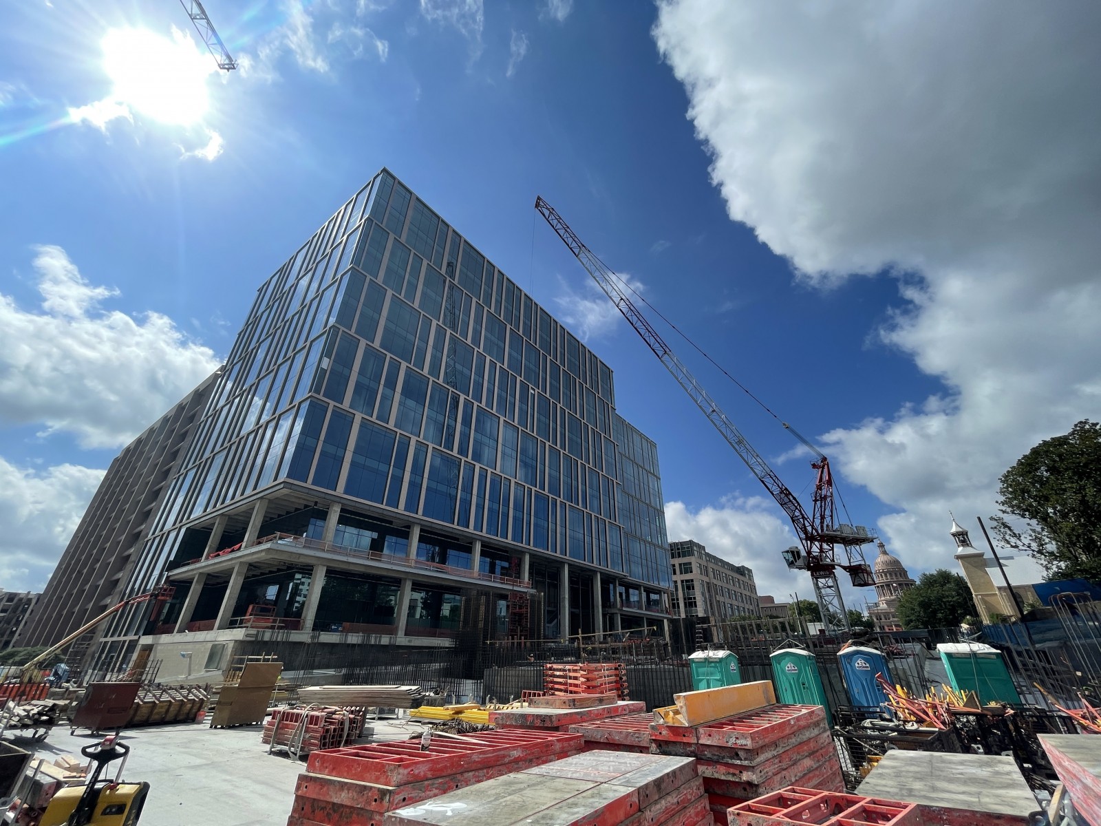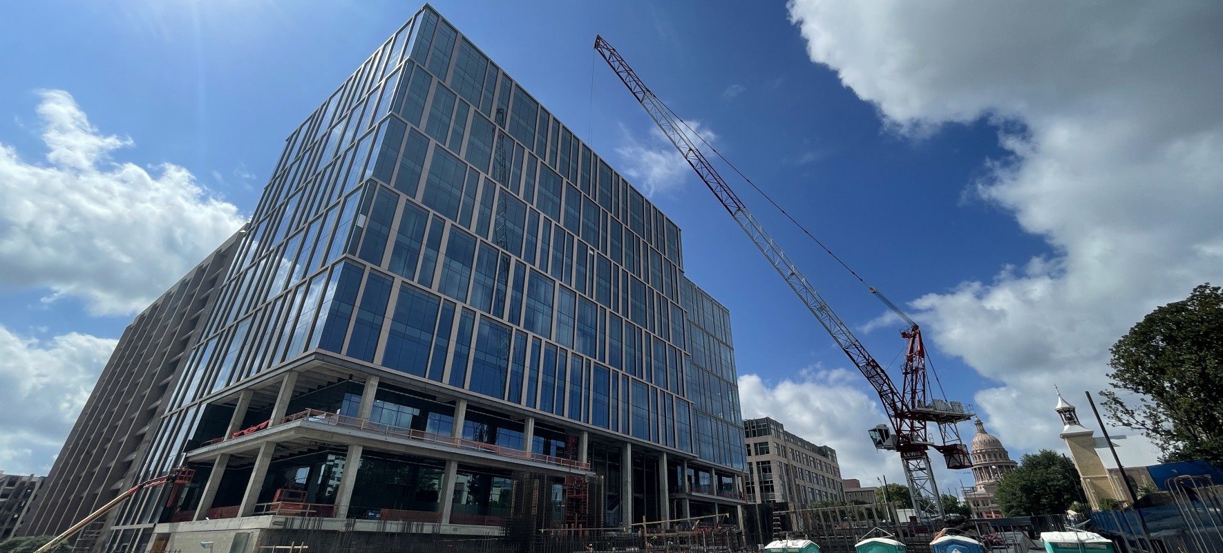 Phase I of the Texas Capitol Expansion project is a bold re-envisioning of the land between the State Capitol and the University of Texas (UT) campus. It includes a below-grade parking structure and landscaped public mall (“Texas Mall”), a central utility plant, and two state office buildings—1601 and 1801 Congress. In addition to providing much-needed office space for state government, the project will connect the UT campus with the Capitol and provide a public amenity space.