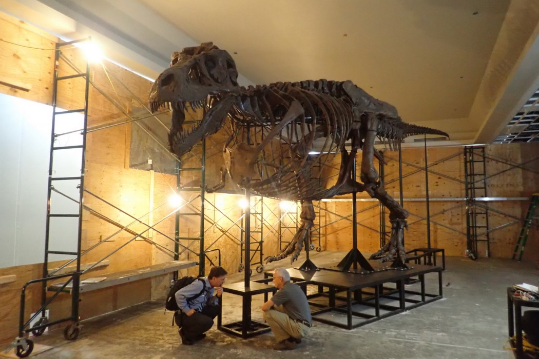 SUE and the accompanying steel-framed base, supporting posts, and armature that supports the fossils were moved from Stanley Field Hall, where the exhibit was located for eighteen years, to a new location on the second floor of the museum. The new gallery is located in a portion of the museum building that was originally a full-height, open-air light well. In 2002, the light well was infilled with three levels of steel-framed, lightweight concrete slab floors spanning 39 feet. The floor structure at the new location was reviewed for the weight of SUE, but during assembly of the skeleton, Field Museum staff noted concerns with respect to floor vibrations and accompanying dynamic response of the fossils.